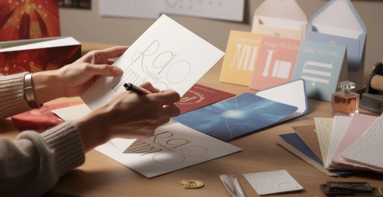 Les techniques d’impression contribuent elles aussi à la dimension sensorielle de la carte de vœux. Le letterpress, ou impression typographique en relief, crée un léger enfoncement du texte ou des motifs dans le papier. Ce creux perceptible sous les doigts donne une impression de profondeur et de permanence, comme si les mots étaient gravés dans la matière. La sérigraphie, de son côté, permet d’appliquer des couches d’encre plus épaisses et plus vibrantes, offrant un rendu visuel intense et parfois légèrement texturé. Ces procédés artisanaux, souvent utilisés en petite série, renforcent la perception de rareté et d’intentionnalité : le destinataire comprend intuitivement que sa carte de vœux n’est pas un simple produit industriel, mais un objet pensé pour lui.